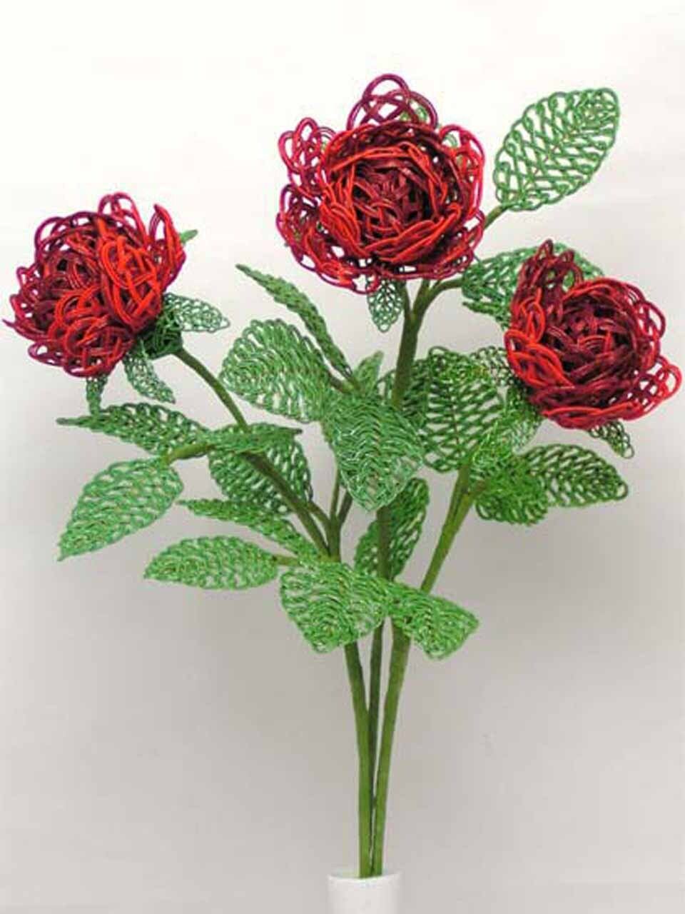 バラ3本分の材料。 1本は花1輪と葉6枚で構成されます。
